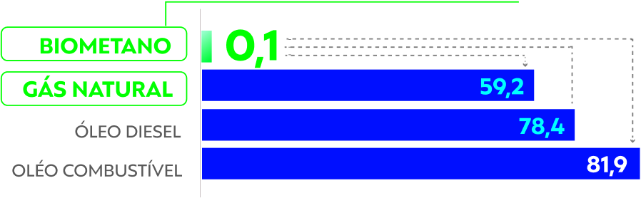 Veja o comparativo de emissões de CO² com outros energéticos